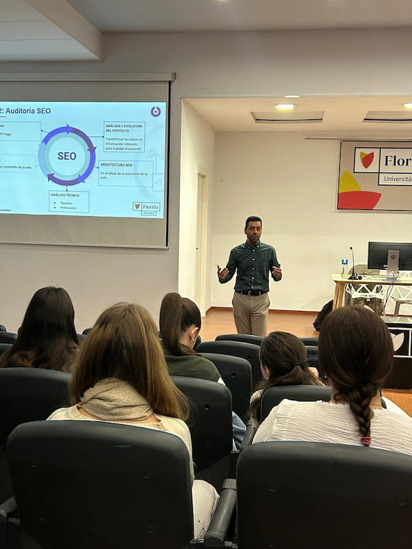 - Formación y Divulgación: Mi compromiso con el sector me ha llevado a impartir talleres de SEO en la Florida Universitaria, ayudando a las nuevas generaciones de profesionales a estructurar proyectos desde cero.